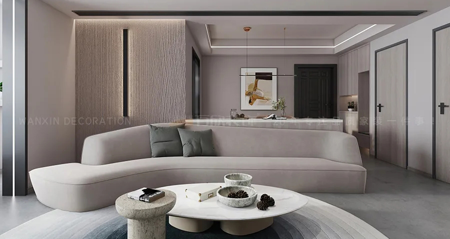本案定位于現(xiàn)代極簡風(fēng)格,給人一種唯美純凈的自然感受。形式簡約、藝術(shù)感、人文性,這些是本案設(shè)計(jì)師在這個(gè)住宅空間里想要盡力去打造的。用色彩、材質(zhì)、家具的款式去呈現(xiàn)空間的氣、韻和美。