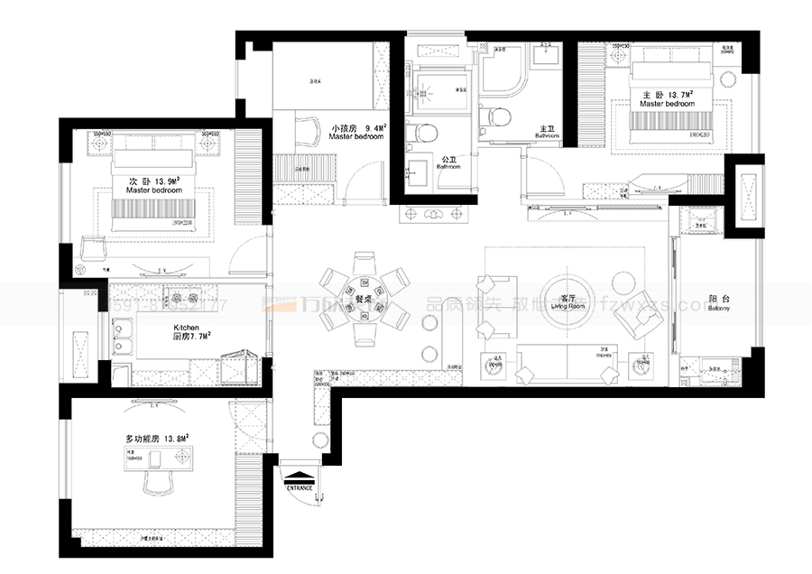 本案是一套祖孫三代同住的住宅,屋主豁達友善,喜好簡潔大方的設(shè)計。本案設(shè)計以人為本,采用簡單的材質(zhì)、明快的線條、百搭的色彩塑造了這個雅致舒適的簡歐空間。