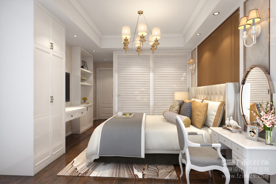 摒除了繁華裝飾,回歸靜謐安寧。白凈的墻面搭配實木地板,讓空間顯得清爽舒適。充滿線條感的簡潔家具擺放在室內(nèi),將利落的現(xiàn)代感與雅致的歐式元素,巧妙結(jié)合。一隅梳妝角柔化了清晨時光~