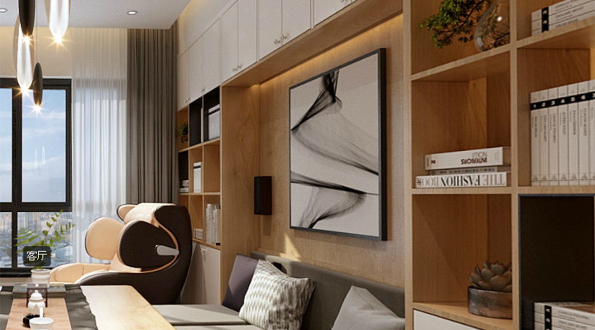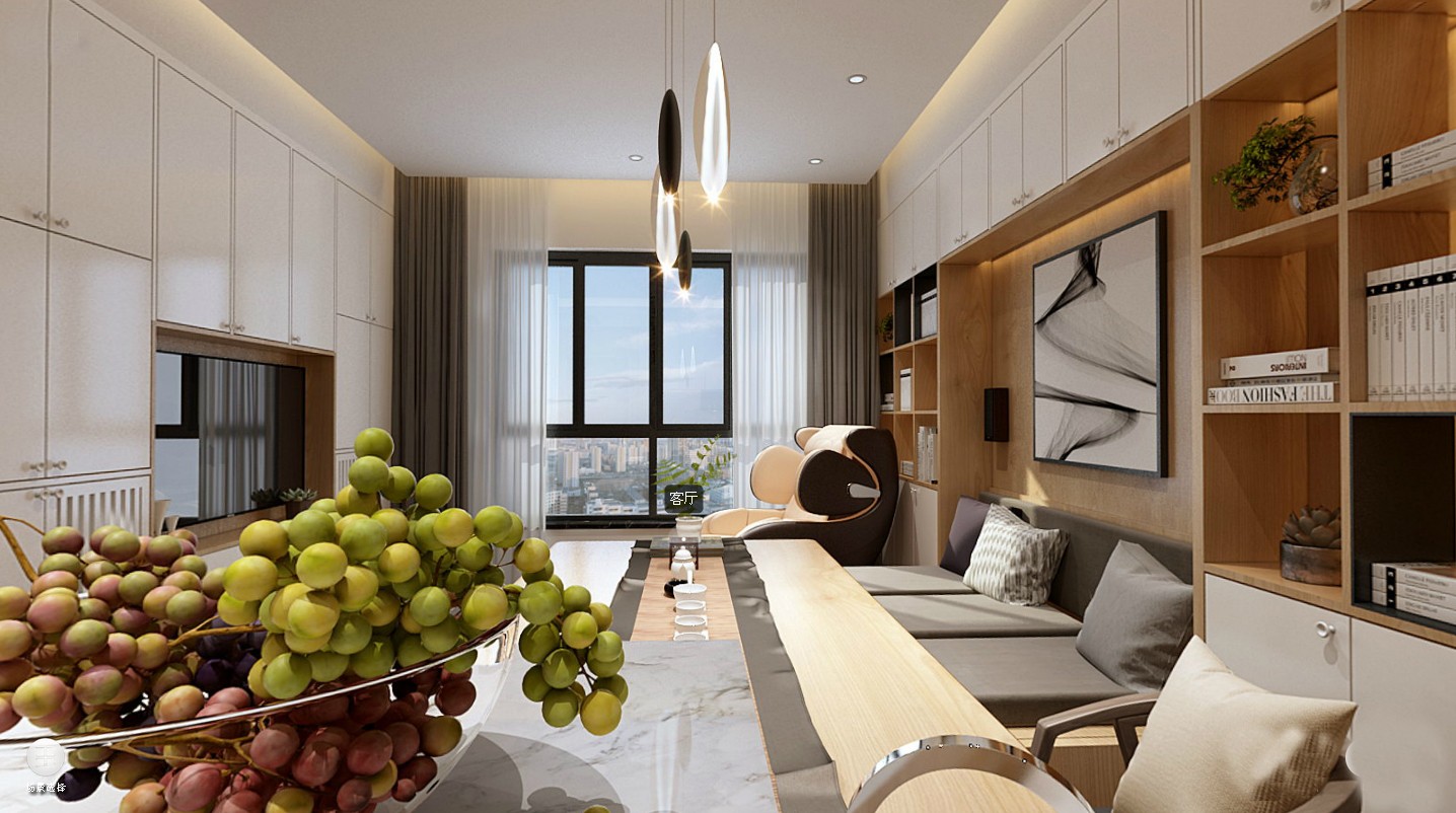 設(shè)計(jì)理念丨本案在設(shè)計(jì)上充分考慮中小戶型空間尺度問題,在設(shè)計(jì)上以現(xiàn)代風(fēng)格為主,融入簡潔的北歐元素和日式色彩,電視背景沙發(fā)背景運(yùn)用大面積白色柜子,地面配淺色木紋大板仿磚開放式廚房餐廳客廳一體化(LDK)設(shè)計(jì),加上適度的燈光裝飾也使居室空間充滿溫馨的氣息,既能給人在空間得到精神和身體上的放松,同時(shí)又能滿足女主人收納儲(chǔ)物以及男主人舒適品茗的要求。