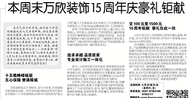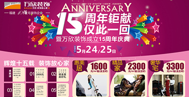 2014年5月25日,大家期待已久的福州萬欣裝飾15周年慶典順利圓滿落下帷幕,本次活動為期2天(5.24-25),令到場來賓和廣大支持萬欣的朋友們共同見證了本次慶典的火爆及最大的讓利活動?,F(xiàn)在請跟隨小編的鏡頭一起看看活動現(xiàn)場的盛況吧!