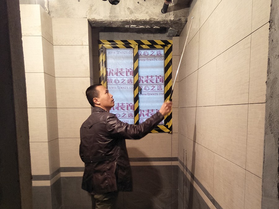 檢查衛(wèi)生間墻面鋪貼平整度
