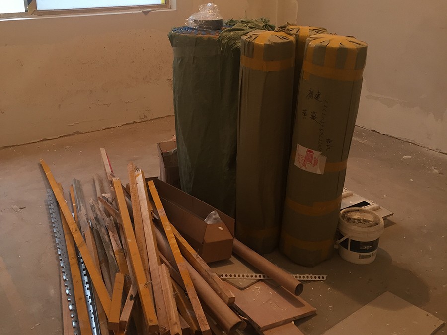 飾面磚剛鋪貼完畢,現(xiàn)場干凈整潔,堆放有序,標(biāo)識清晰