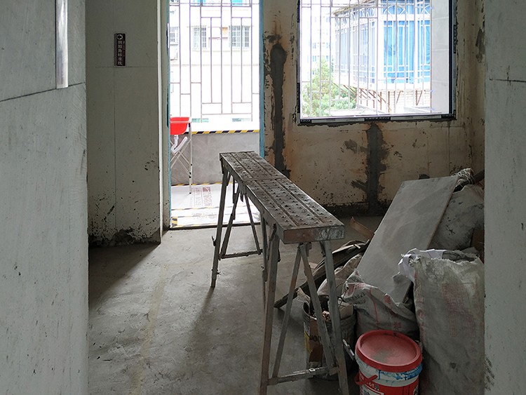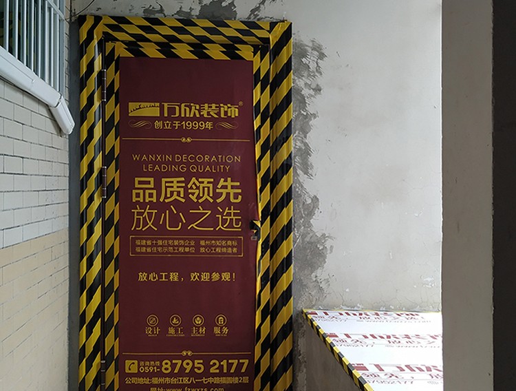 △施工過(guò)程中,運(yùn)輸裝修材料及垃圾等,容易造成入戶門刮花或者損壞,所以對(duì)入戶門正反兩面用無(wú)紡布及黑黃膠帶做好保護(hù)。