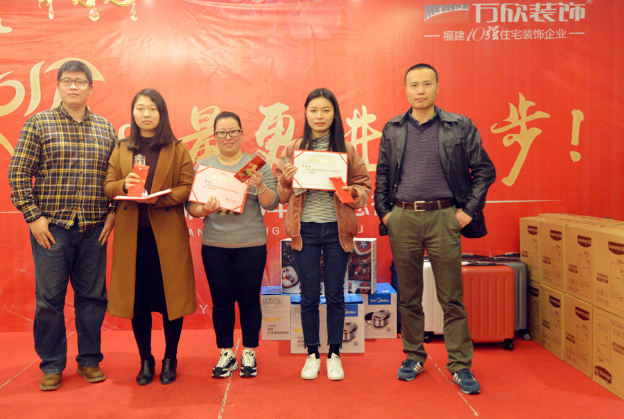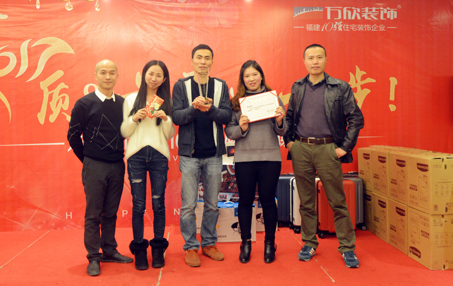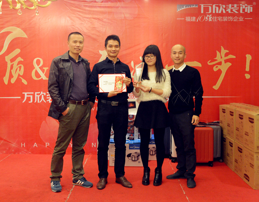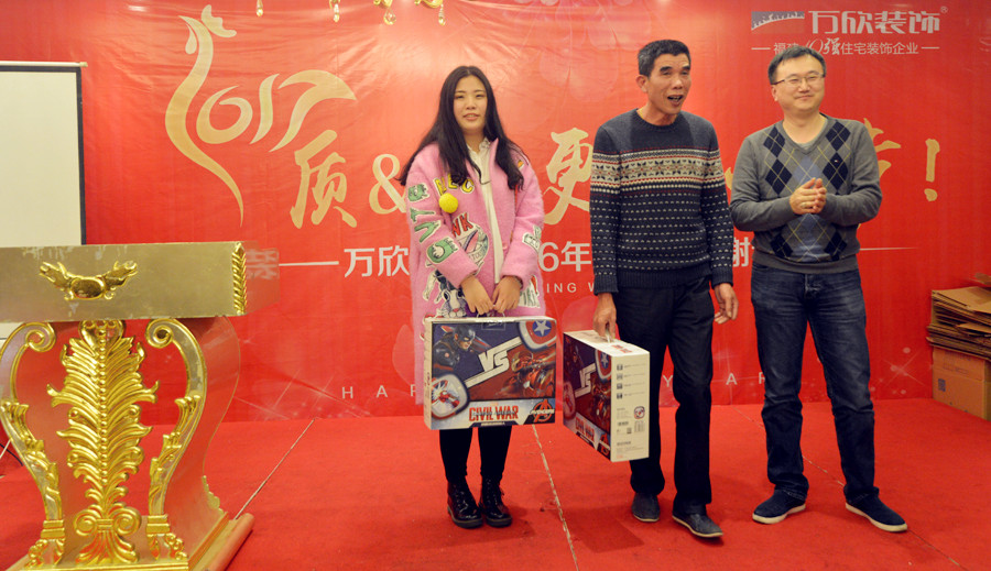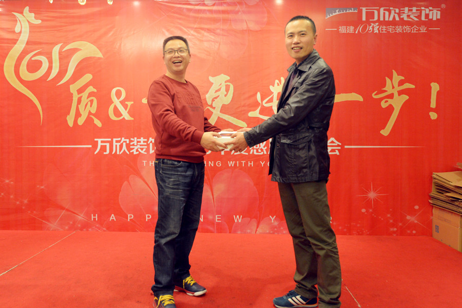 萬欣裝飾林總在年會(huì)中致辭,對(duì)于2016年度業(yè)績同比增長30%給予了高度肯定,并對(duì)公司整體的品質(zhì)與服務(wù)給予了高度的評(píng)價(jià)。2016年,是豐收的一年;2017,我們翻開新的篇章,續(xù)寫輝煌。在質(zhì)量和業(yè)績上更進(jìn)一步,為客戶、為員工、為自己,攜手萬欣家人一起實(shí)現(xiàn)新目標(biāo)。接著,江總也對(duì)萬欣裝飾2016年收獲的輝煌成就進(jìn)行簡(jiǎn)單的總結(jié)。