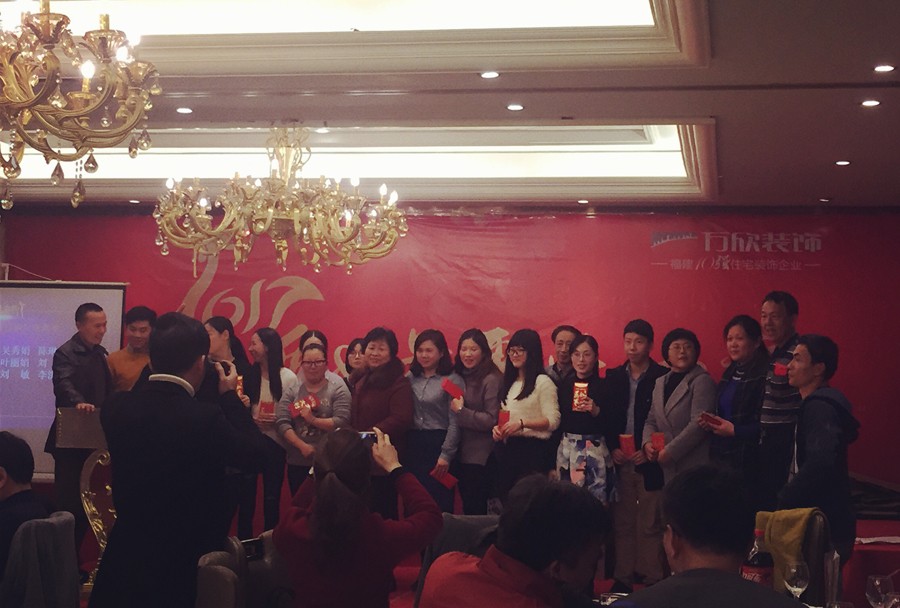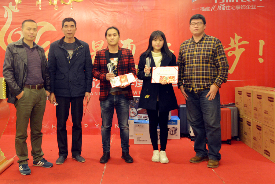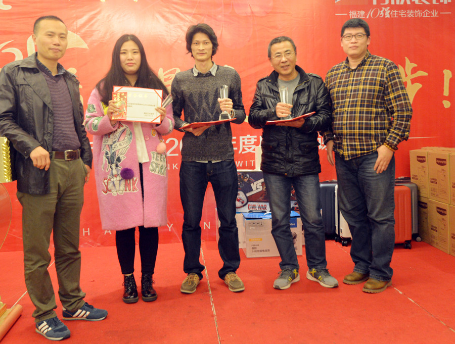 會(huì)上,林總、江總及4個(gè)部門總監(jiān)對(duì)于2016年度中表現(xiàn)突出的團(tuán)隊(duì)、主管、家裝顧問、設(shè)計(jì)師、監(jiān)理及新人頒發(fā)獎(jiǎng)金、證書及獎(jiǎng)杯。他們將辛勤的汗水灑下,毫無怨言的付出。此刻,他們熠熠生輝。